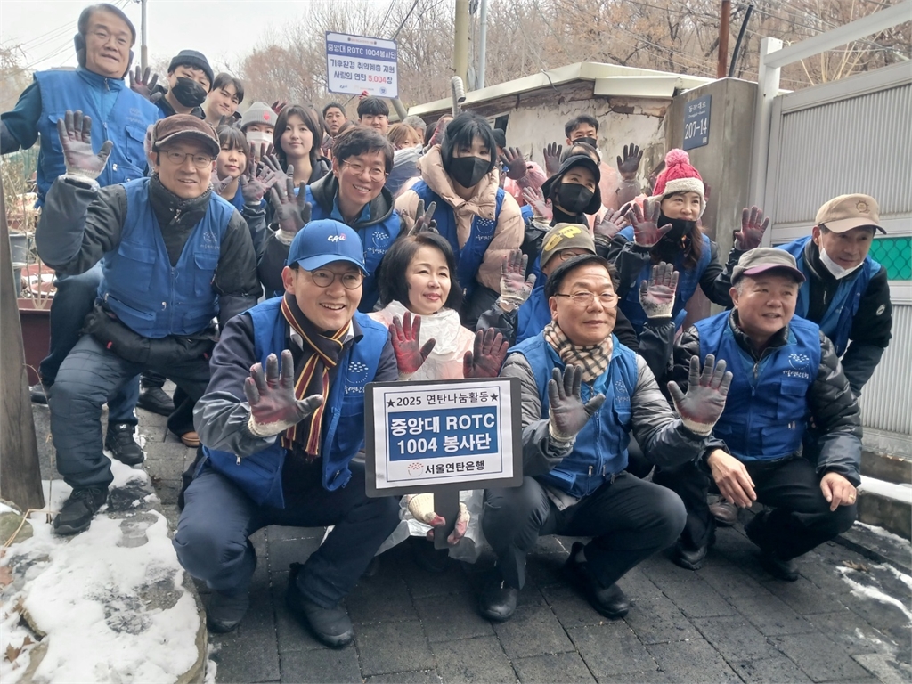 중앙대학교ROTC 1004 봉사단(단장 오병하,26기)이 지난 12월 6일 서울 동작구 정금마을에서 ‘함께 따뜻한 겨울나기’ 연탄 나눔 봉사활동을 진행했다. 이번 봉사에는 중앙대 ROTC 동문과 총학생회, 현대병원 재난의료봉사단, 동작구 자원봉사센터 등 총 44명이 참여했으며, 취약계층 8가구에 연탄 2,000장(가구당 250장)을 배달했다.
