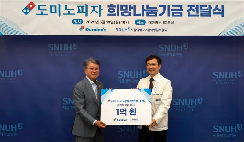 세계적인 배달 피자 브랜드 도미노피자가 서울대학교어린이병원에 1억 원의 기부금을 전달하며 20년 넘게 이어온 사회공헌 활동을 다시 한번 실천했다.