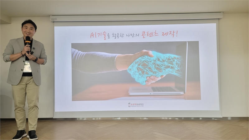 강연은 ㈜트루팍프로덕션 박철우(42기,광운대)대표가 맡아, ▲스마트폰과 AI 기술을 활용한 1인 유튜브 운영 ▲이미지·노래·동영상을 AI로 제작하는 방법 등 즉석에서 참여자의 실제 사례와 노하우를 중심으로 강의했다.